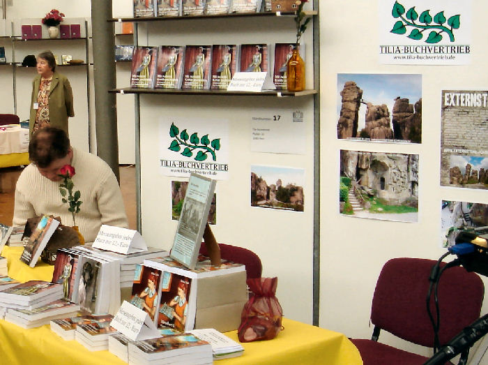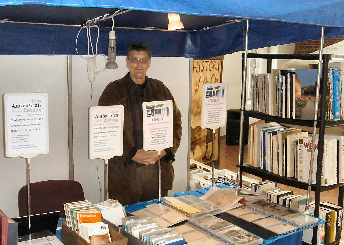 Internet-Antiquar Helmer Pardun aus Radebeul - sein Stand ausgeleuchtet mit Stefans Lampen!