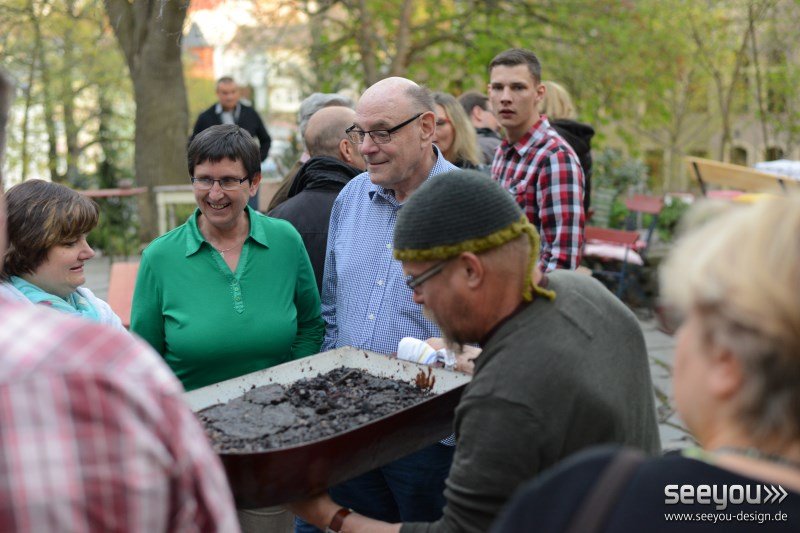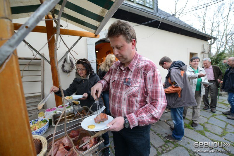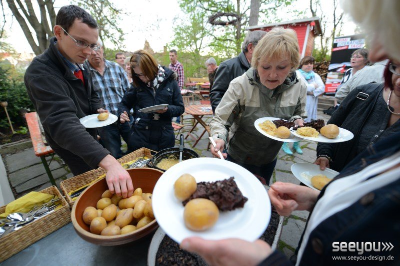 Hans Fischers Blut zur Verpflegung in der Lesepause. Das Wetter spielte mit und alle hatten Hunger.