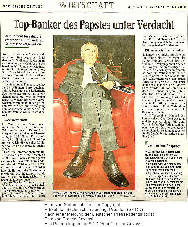 Alle Rechte liegen bei der Sächsischen Zeitung, Dresden, der Deutschen Presseagentur (dpa) und Franco Cavassi (Foto).